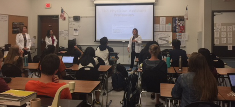 Mary Garrison, Sheila Yack, and Mary Bradley together met with students at Vandegrift High School, in Austin, Texas. The 21 students were members of the school’s HOSA-Future Health Professionals organization, which is an international student organization with the mission of fostering leaders in the global health community through education, collaboration, and experience. Similar to Wert’s and St. Louis’ experiences, only five students acknowledged knowing what a PA was at the start of the session, despite their interest in health care careers.